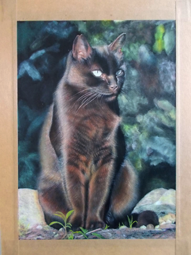 黒猫を描くのに便利そうとか思って今回初めて使ってみたダイソーの黒画用紙ですが、表面がわりと平滑なので、ドライブラシだとふんわりしたタッチになりやすいようです。