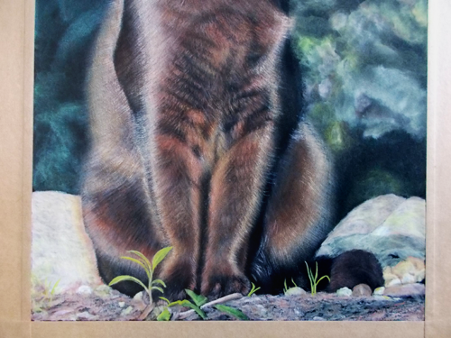 色鉛筆の性能とは別に、普通は白い画面に黒の鉛筆などで描いていくのとは逆の描き方になるというのも、なにやら利き手ではないほうの手で描いているような違和感というか、混乱がありました。