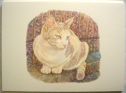 紙にもよるかも知れませんが、うっすら塗ったつもりでも水に溶かしてみると思いのほか暗くなってしまい、明暗のコントラストがつぶれてしまう。特に、手ごろなオレンジ色がなかったためにカドミウムイエローを多用し過ぎて、水彩紙の黄色がかったナチュラルカラーとの相乗効果で異常に黄色がかってしまいました。